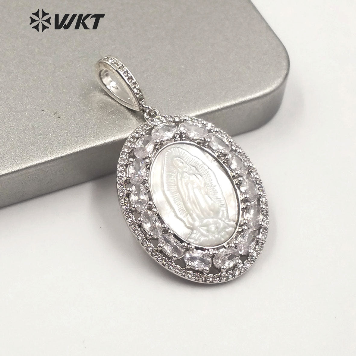 MP142 Wholesale the Virgin Mary Pendant CZ Stone With Natural Shell Pendant Lady Charm Jewelry Virgin Mary Shell Pendant