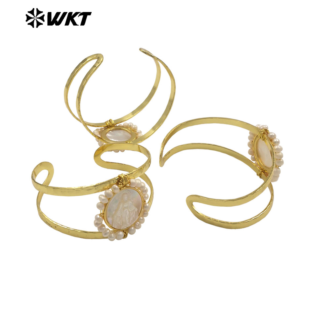 MPB132 Wholesale Religious Gold Plated Double Layers Hand Carved Shell And Pearl Adjustable Bangles As Ladies Party Present