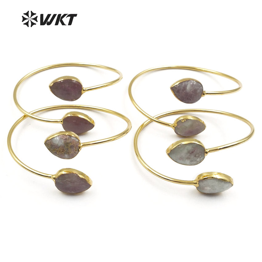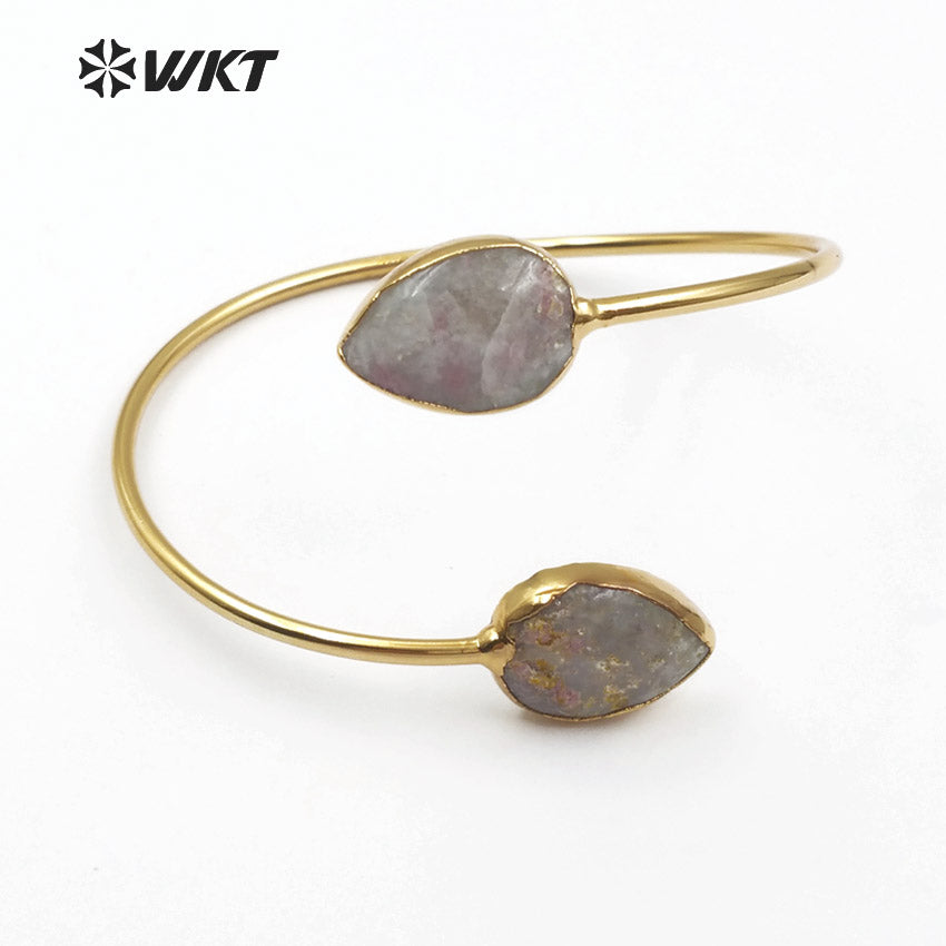 WT-B087 Newest! Fashion Design Natural Rose Jasper Bracelets Fashion Gold Plated Teardrop Bracelets