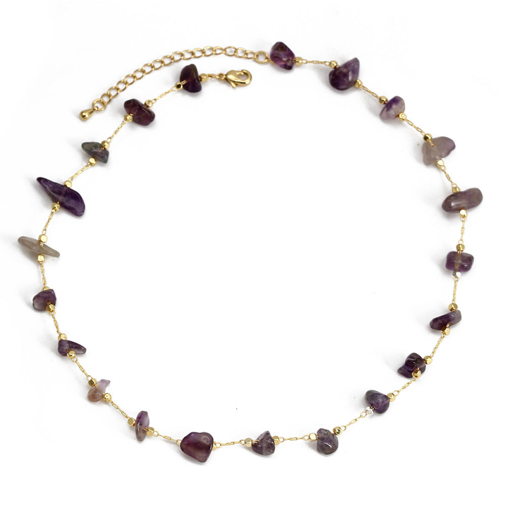 WT-BFN059 Newest Design Handmade Natural Nugget Amethyst Turquoise Stone Beads Rosary Chain Necklace Irregular Beads Necklace