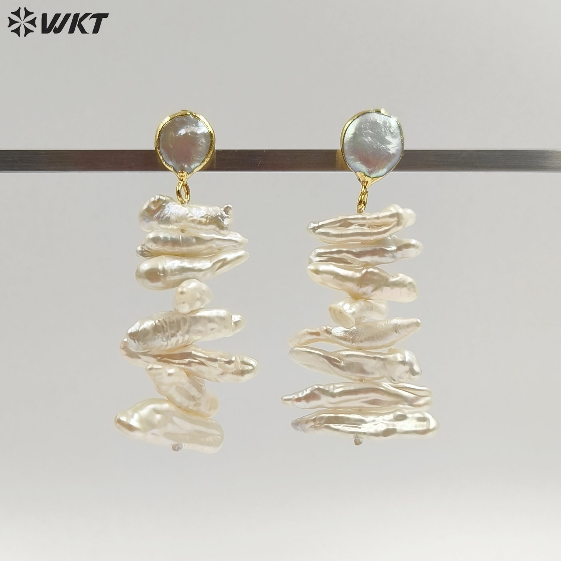 WT-E498 Irregular Shape Pearl Earring Stud With Long Bar Pearl Random Size Jewelry Natural Freshwater Pearl Earring