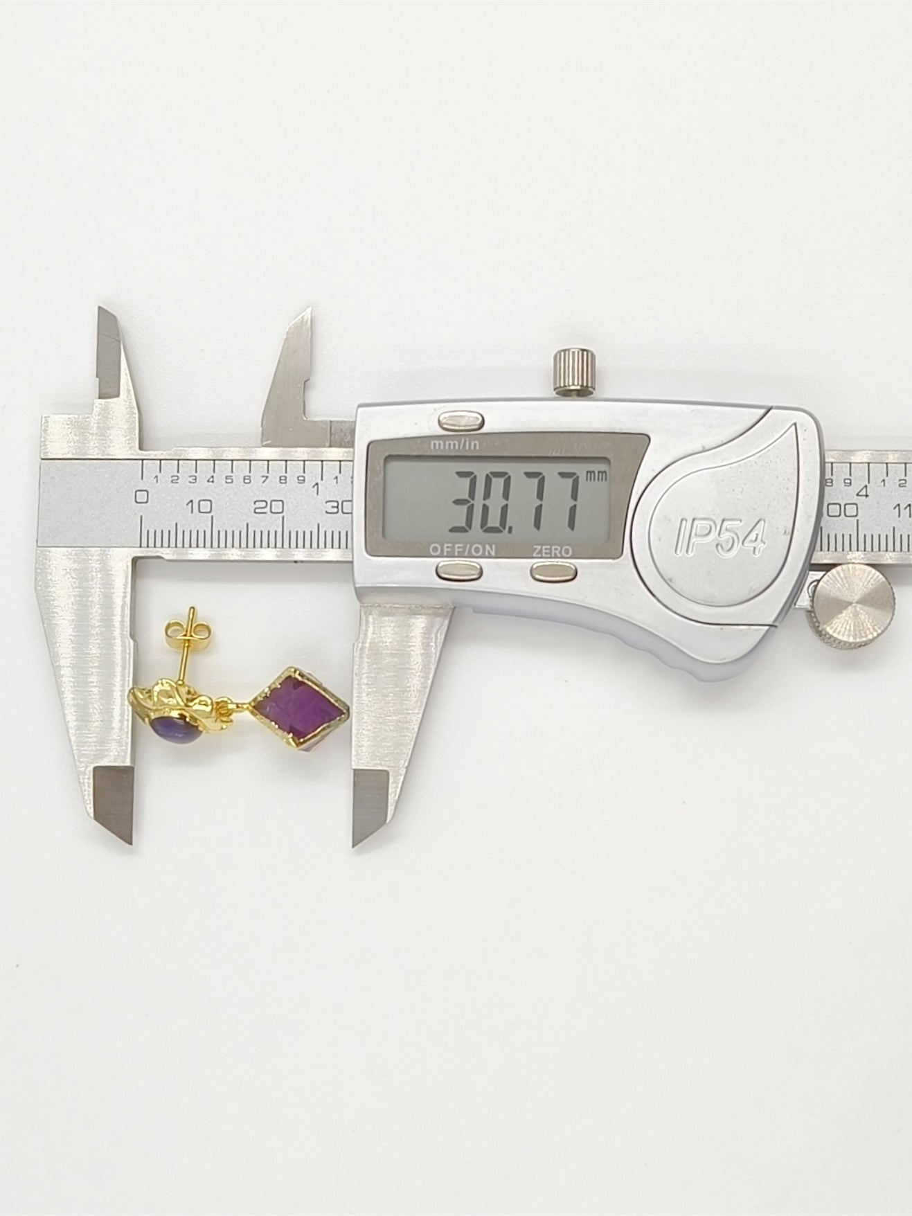 WT-E793 Exquisite Unique 18K Gold Electroplated Natural Gemstones Rhombus Little Earrings As Women Party Birthday Present