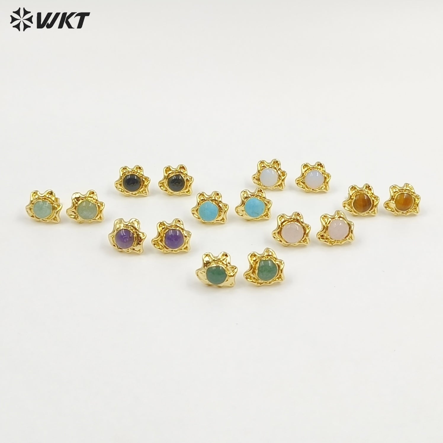 WT-EHP102 Exquisite Lovely 18K Gold Plated Natural Gemstones With Hoop Sun Shape Earrings For Girls Jewelry DIY Findings