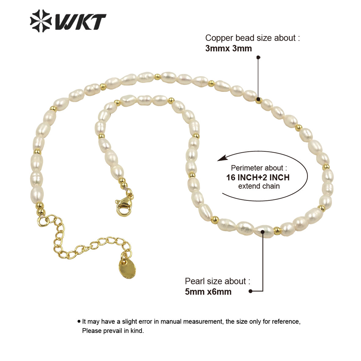 WT-JN190 Amazing Small Size Rice Pearl Chocker Necklace Elegant Women 16 Inch Long Gorgeous Real Pearl Birthday Necklace