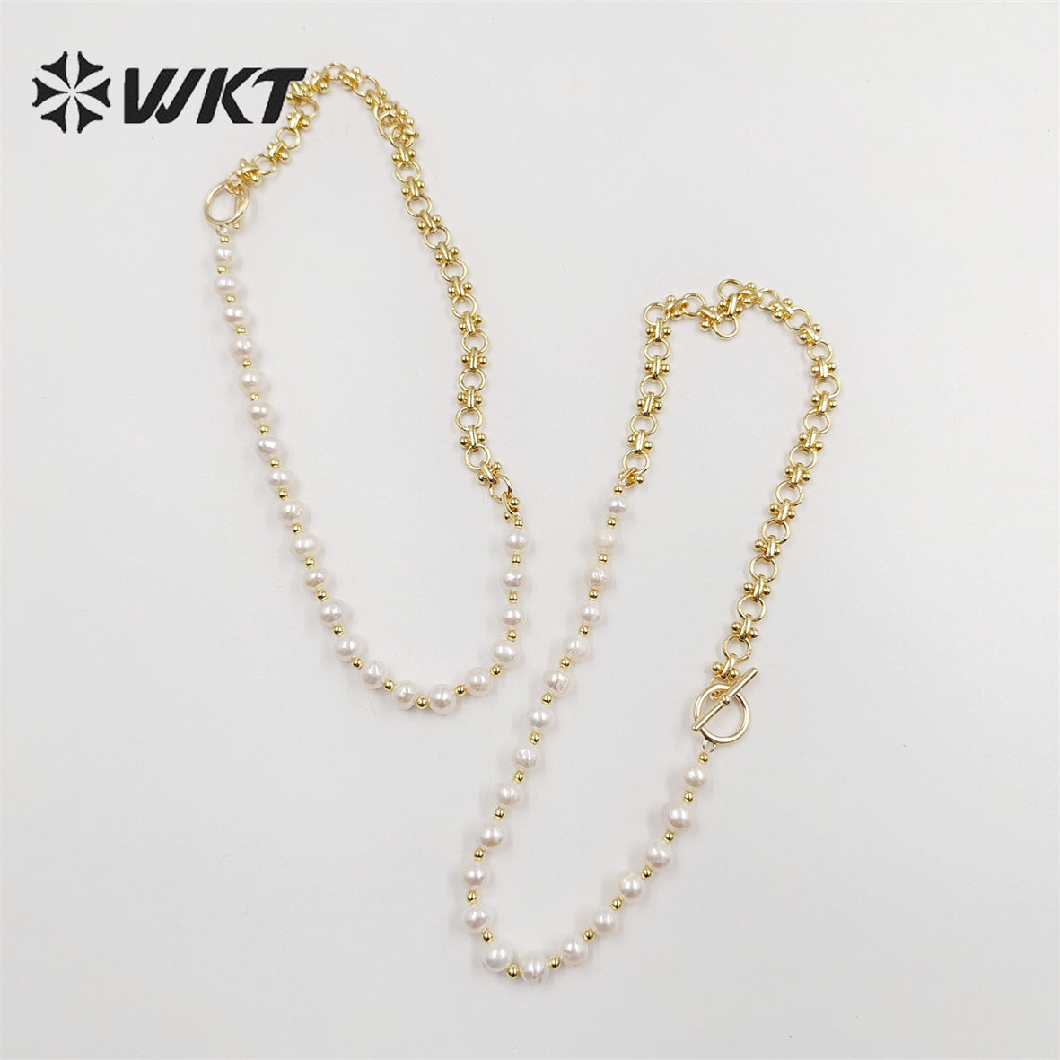 WT-JN232 WKT Exclusive Design Mixture Chain and Pearl Unique Necklace INS Hot Photato Pearl Beads Necklace in Choker