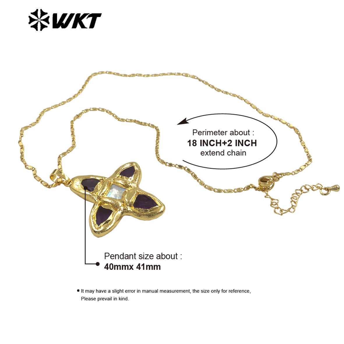 WT-JN314 Amazing Super Hot Christian Religious Natural Turquoise Stone Assemble With Pearl Cross Pendants Necklace in 18K Gold