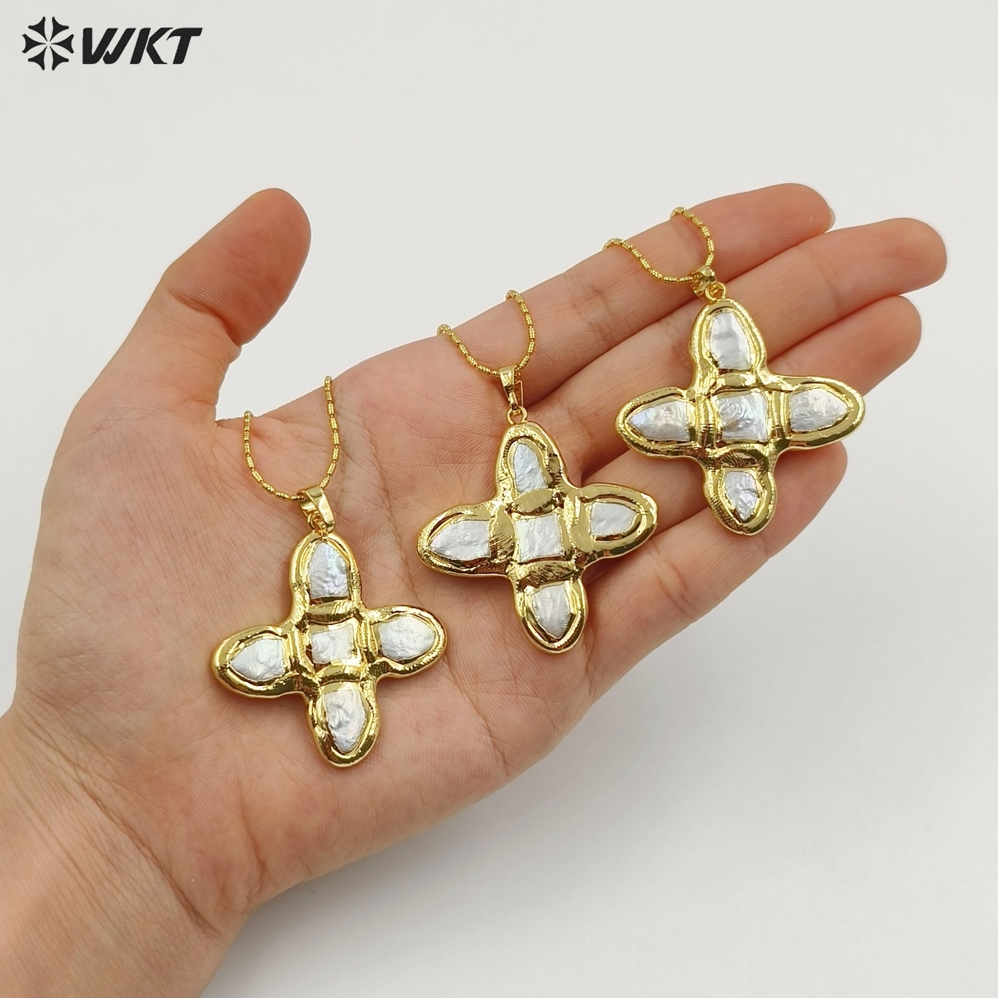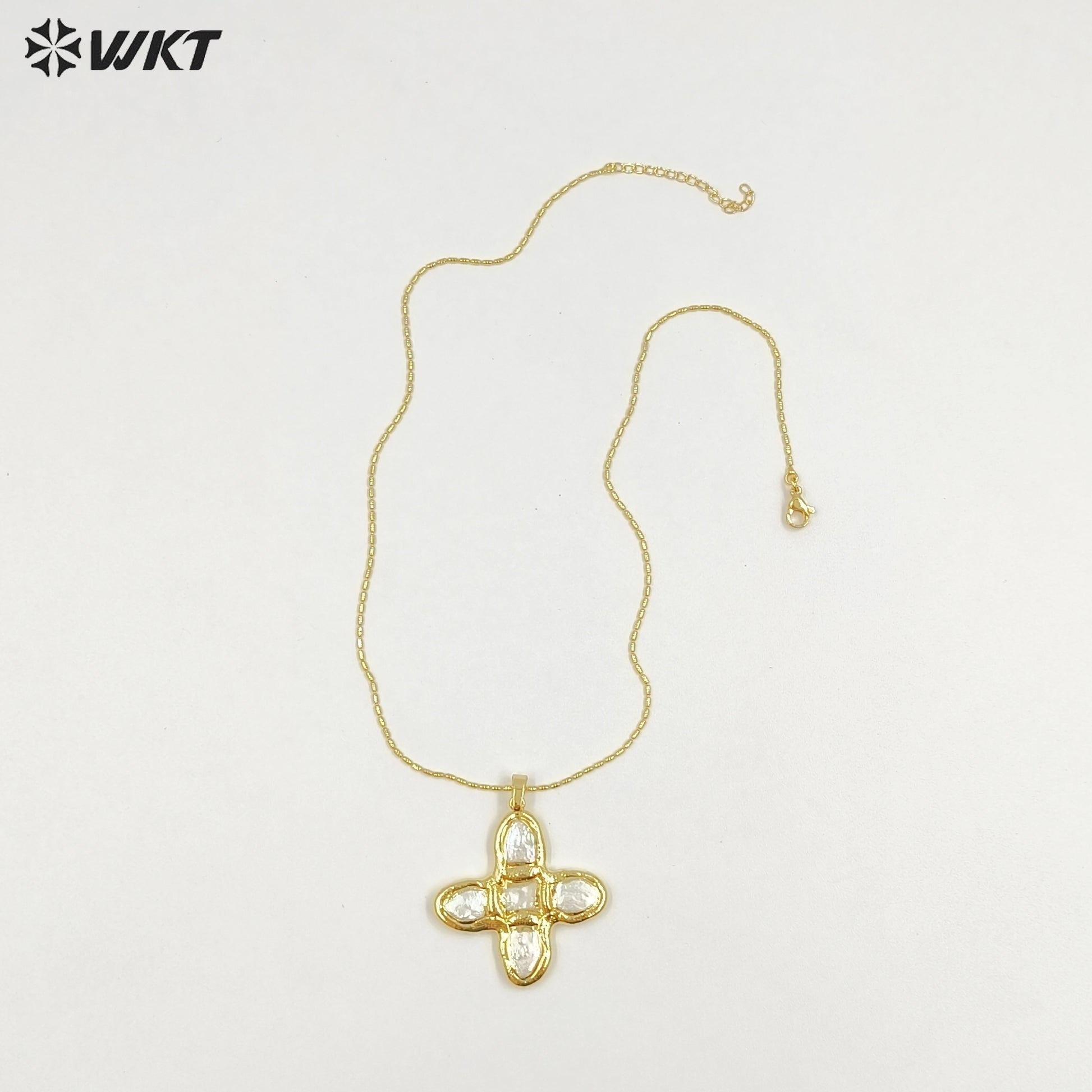 WT-JN340 Top Fashion Gold Plated Boutique Jewelry Five Natural Freshwater Pearls Cross Necklace As Women Anniversary Gift
