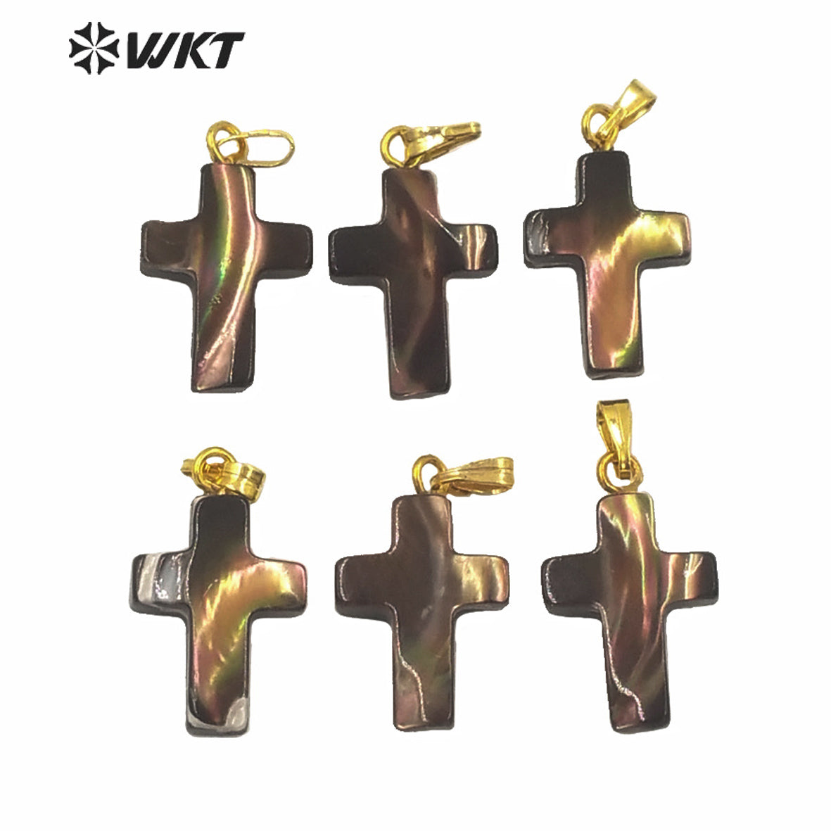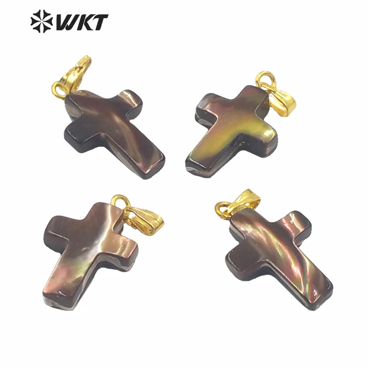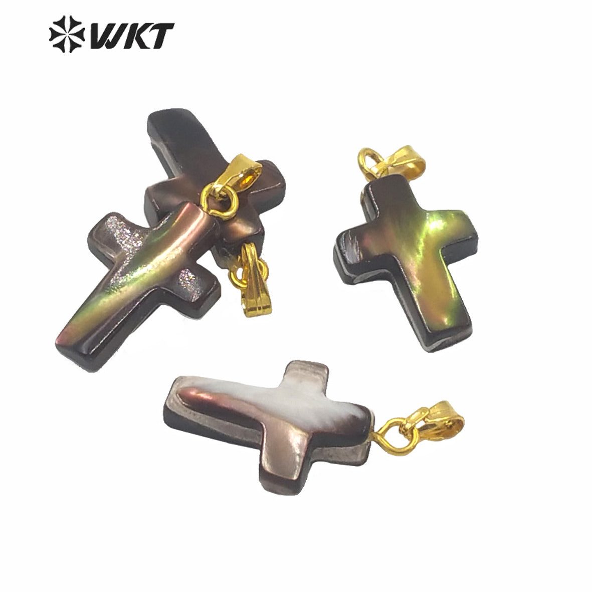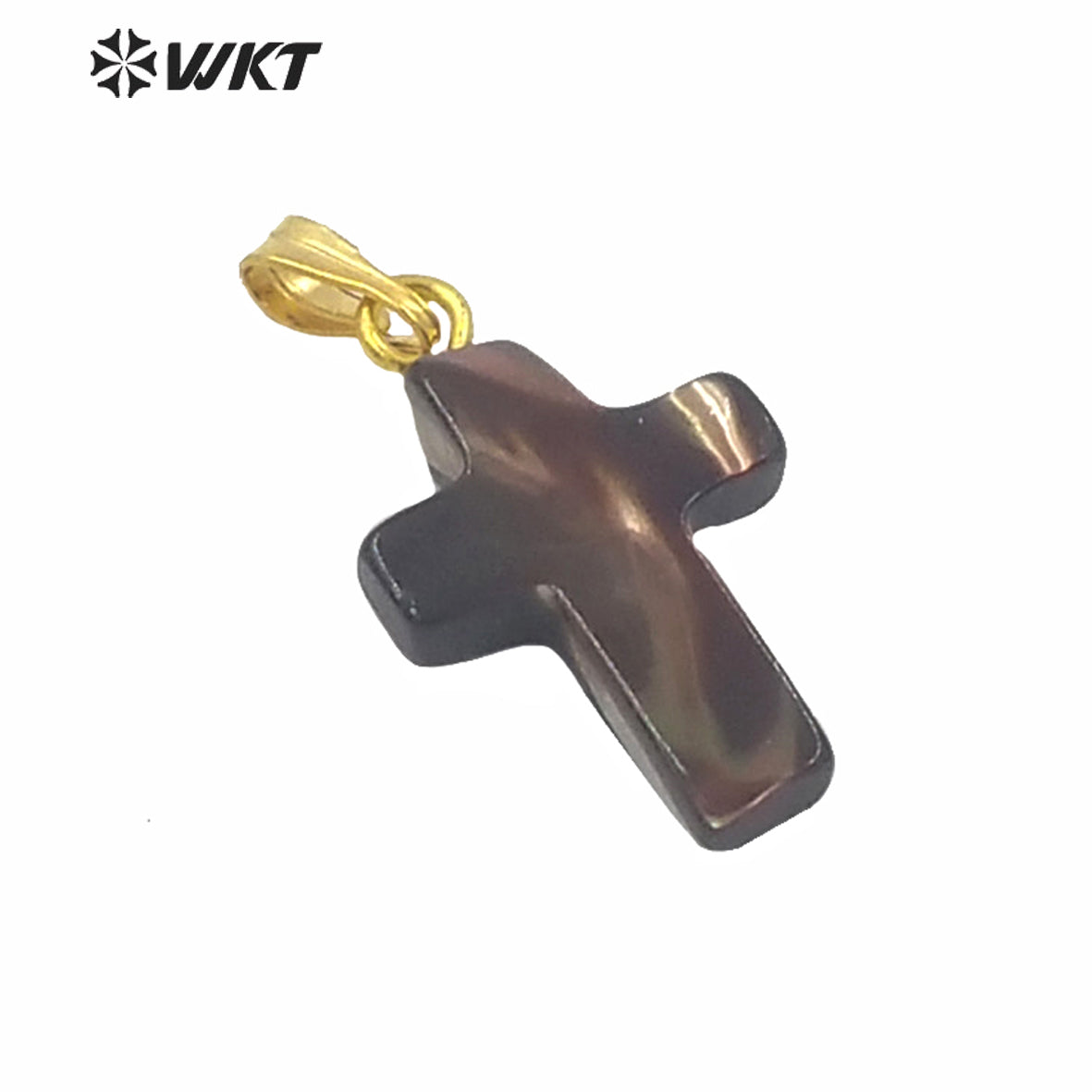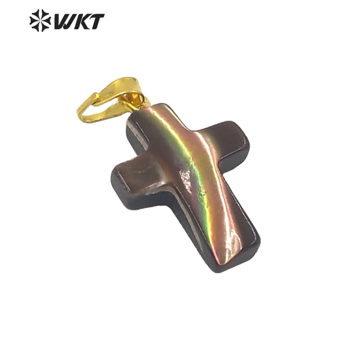 WT-JP229 Fashion Single Hoop Christian Cross Pendant Made of Shell Women Hand Make Shell Cross Jewelry Pendant for Necklace