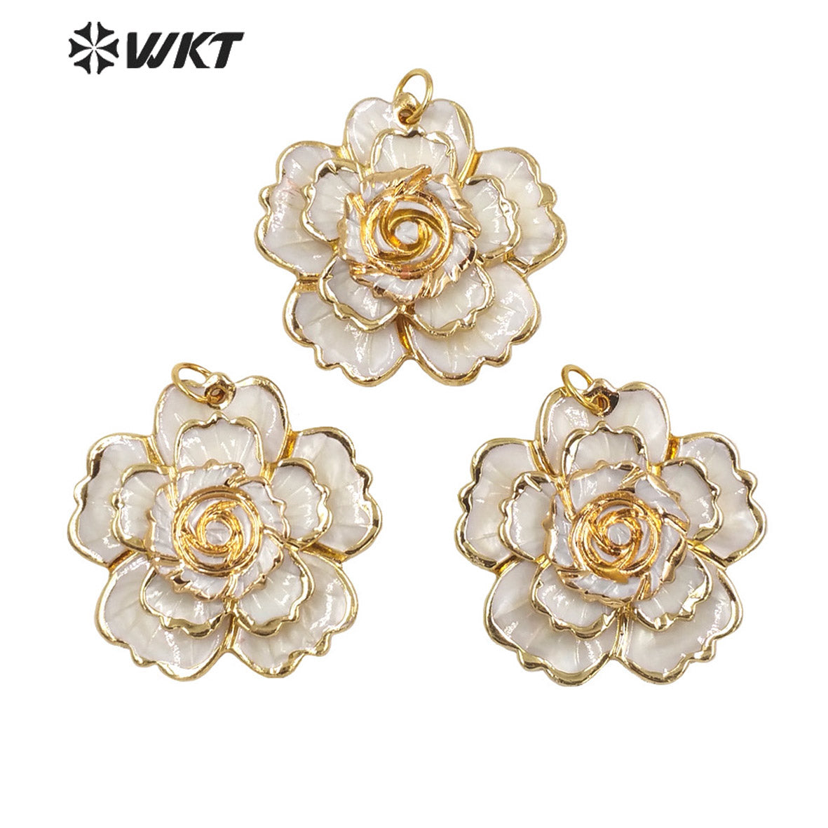 WT-JP241Wholesale New Amazing Hand Carved Big Shell Flower Pendant with Gold Trim Fashion Beauty Natural White Shell Flower