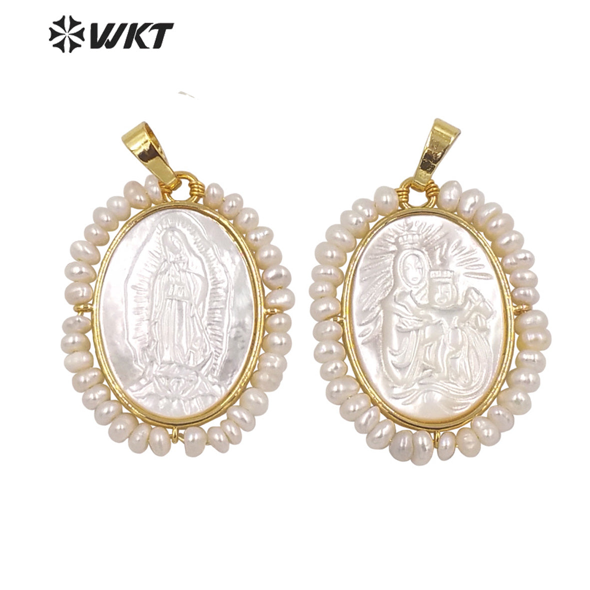 WT-JP255 Amazing White Shell Carved Vintage Marry Pendant Handmade Pearl Charm Wrapped Religions Mother of Jesus Pendants