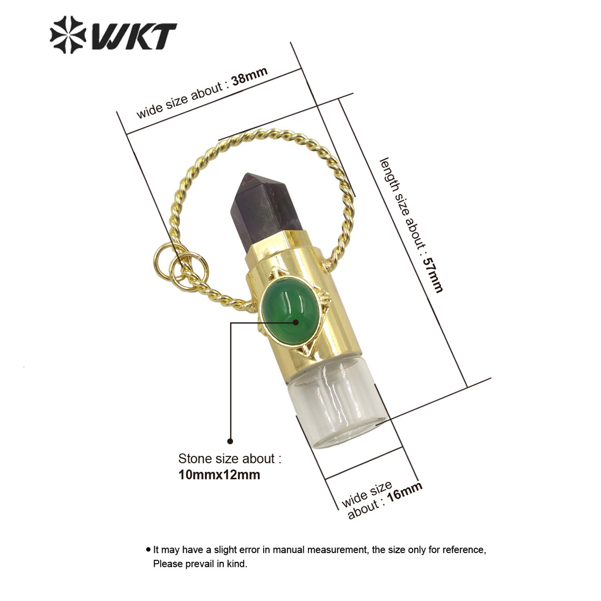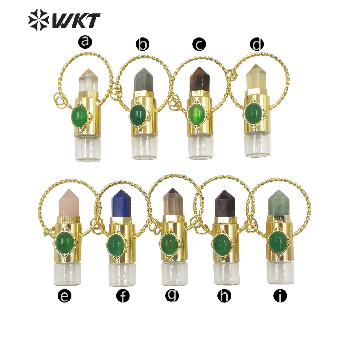 WT-N1308 Amazing WKT NEW Natural Stone Spirit Quartz Roller Perfume Bottle Pendant Necklace for Women Gift Stone Bottle Necklace