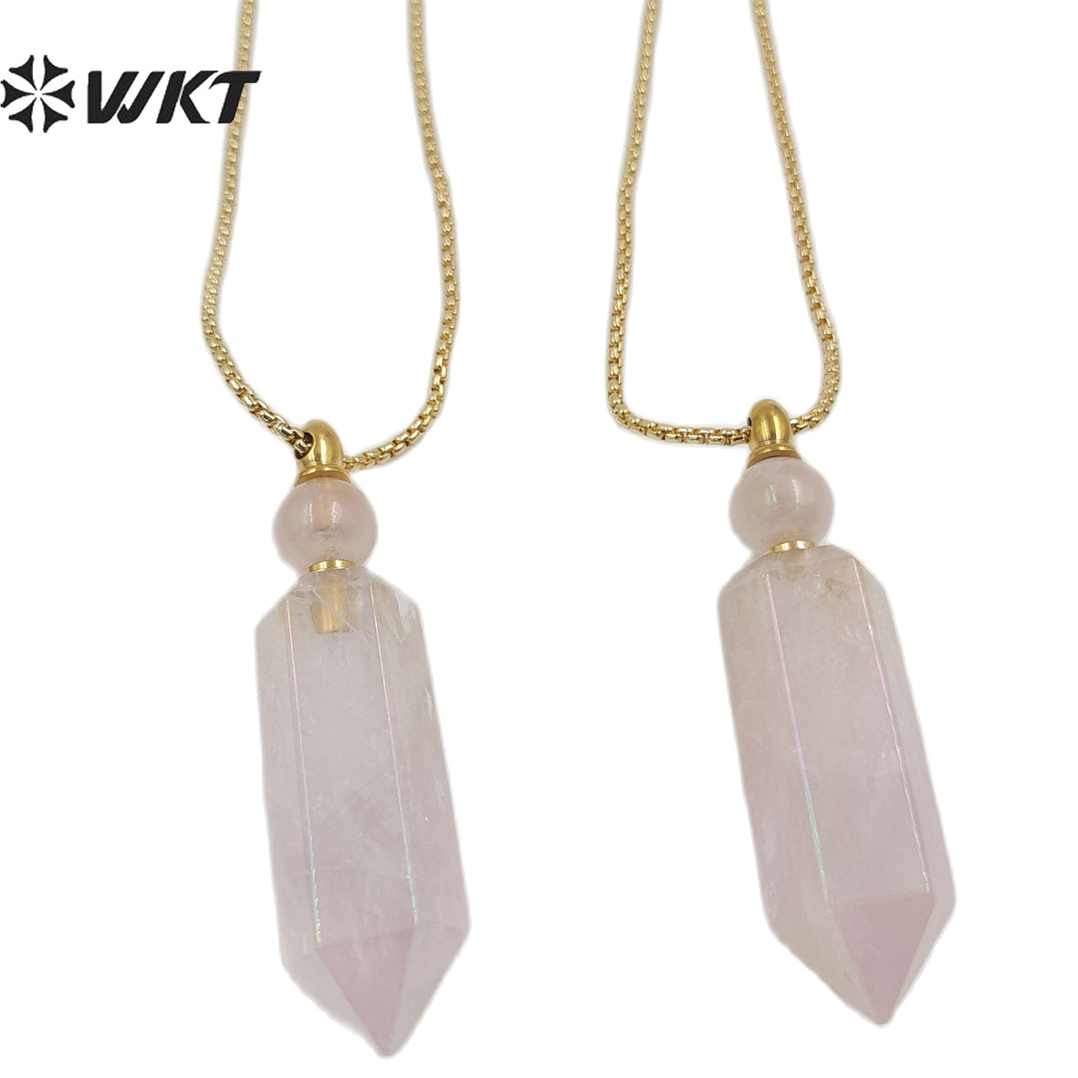 WT-N1369 Crystal Quartz Pink Crystal Hexagonal Prismatic Charming Pendant Necklace for Women Gifts Perfume Bottle Necklace