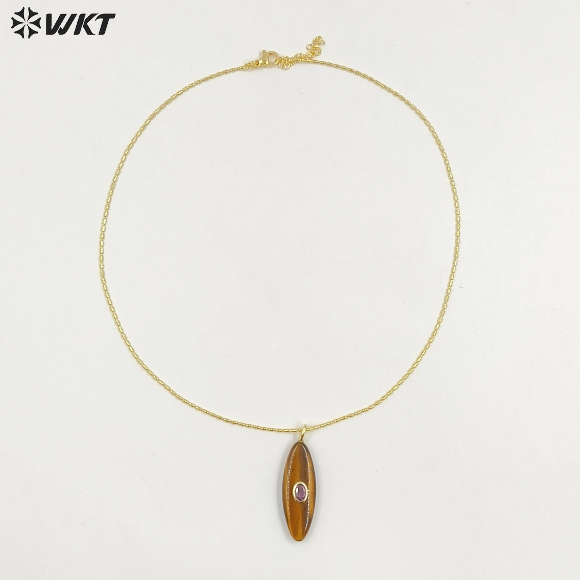 WT-N1509 High Quality Thin Chain Gold Electroplated Natural Gemstones With Zircon Long Oval Shape Pendant Necklaces As Lady Gift