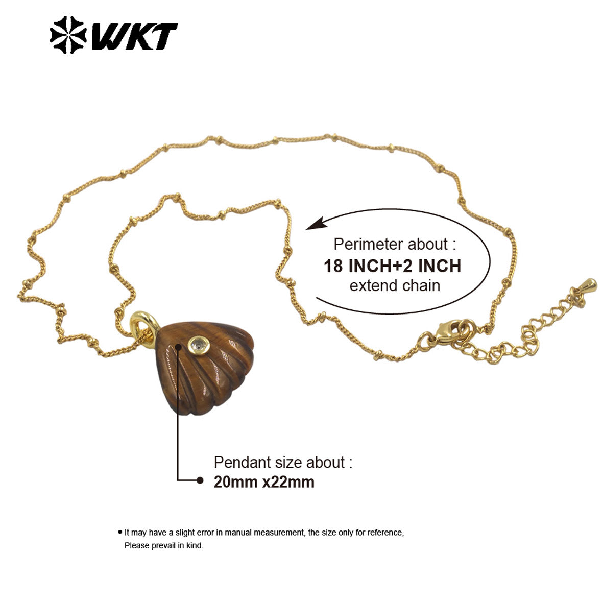 WT-N1513 Ocean Style Gold Chain And Natural Gemstones Hand Carved Shell Shape Pendant Necklace For Female Vacation Matching
