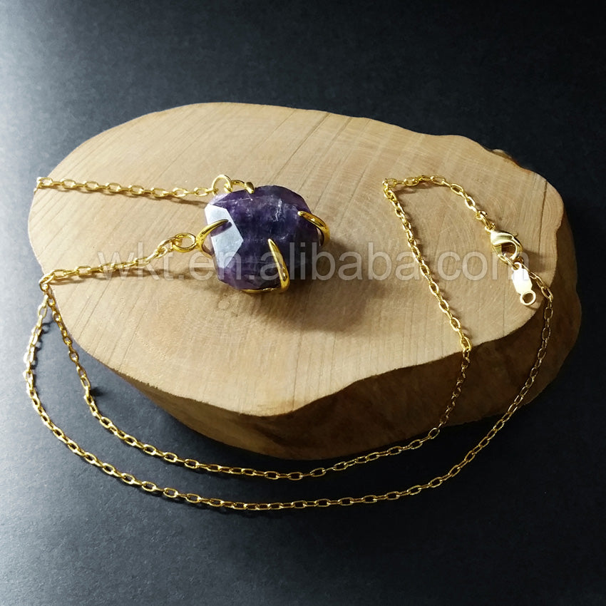 WT-N720 Wholesale Natural Prong Setting Gemstone Necklace 24k Gold Plated Faceted Turquoise Necklace