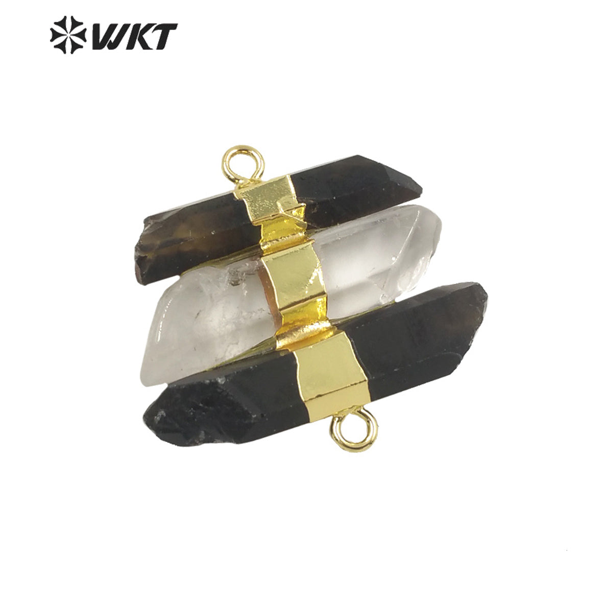 WT-P1690 Amazing Natural Raw Stone Smoky Quartz Connectors for Jewelry Necklace Bracelet Design Women Double Loops Stone Pendant