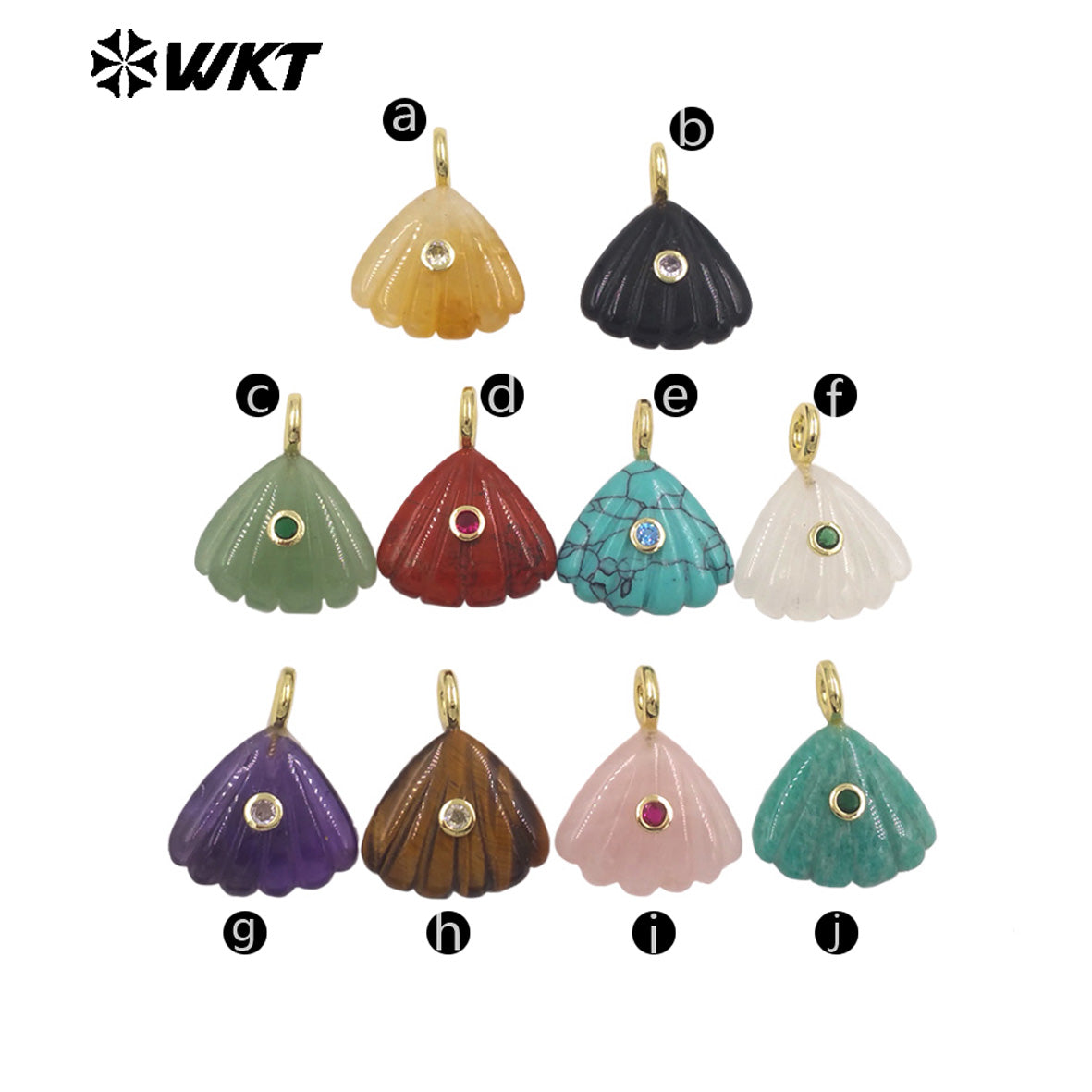 WT-P2054 Delicate Design Gold Plated Zircon And Natural Gemstones Cute Shell Shape Charms Pendant For Handmade Necklace DIY