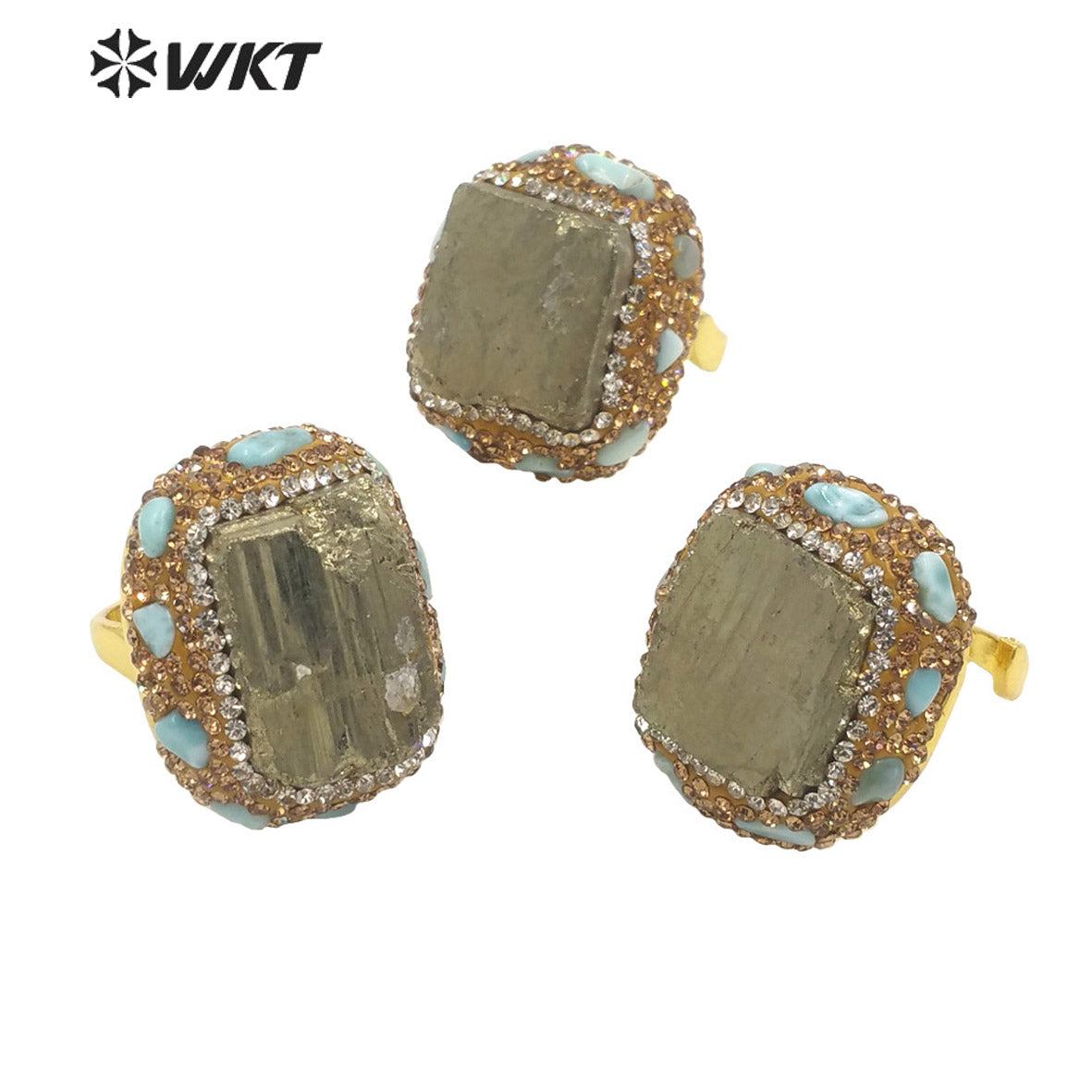 WT-R435 WKT Victoria Age Classic Natural Raw Pyrite Ring Unique Gold Rhinestone Charm Energy Stone Ring for Friend Gift
