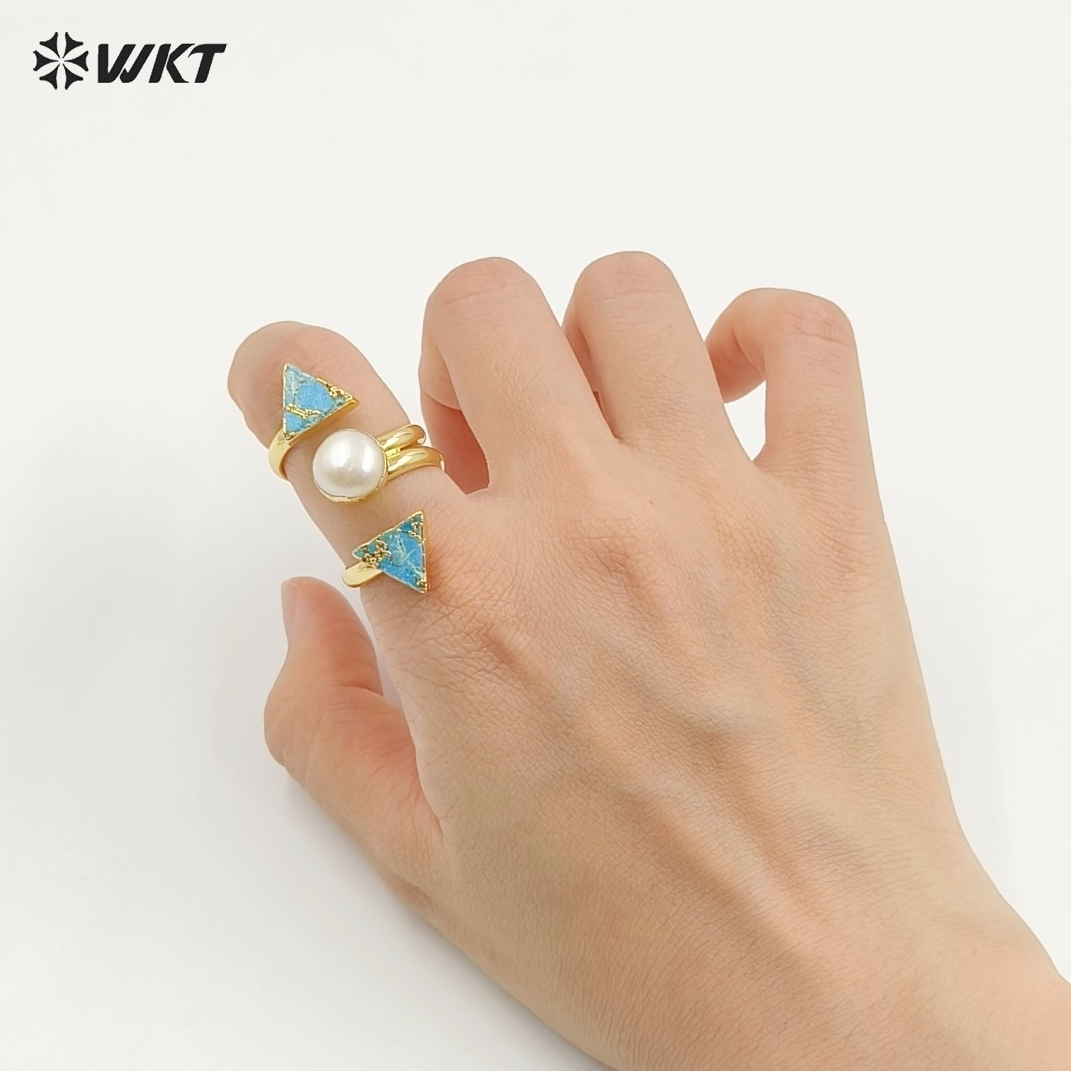 WT-R437 WKT Exclusive 18k Real Gold Plated Resist Tarnishale Copper Turquoise Stone Ring Women Adjustable Triple Natural Ring