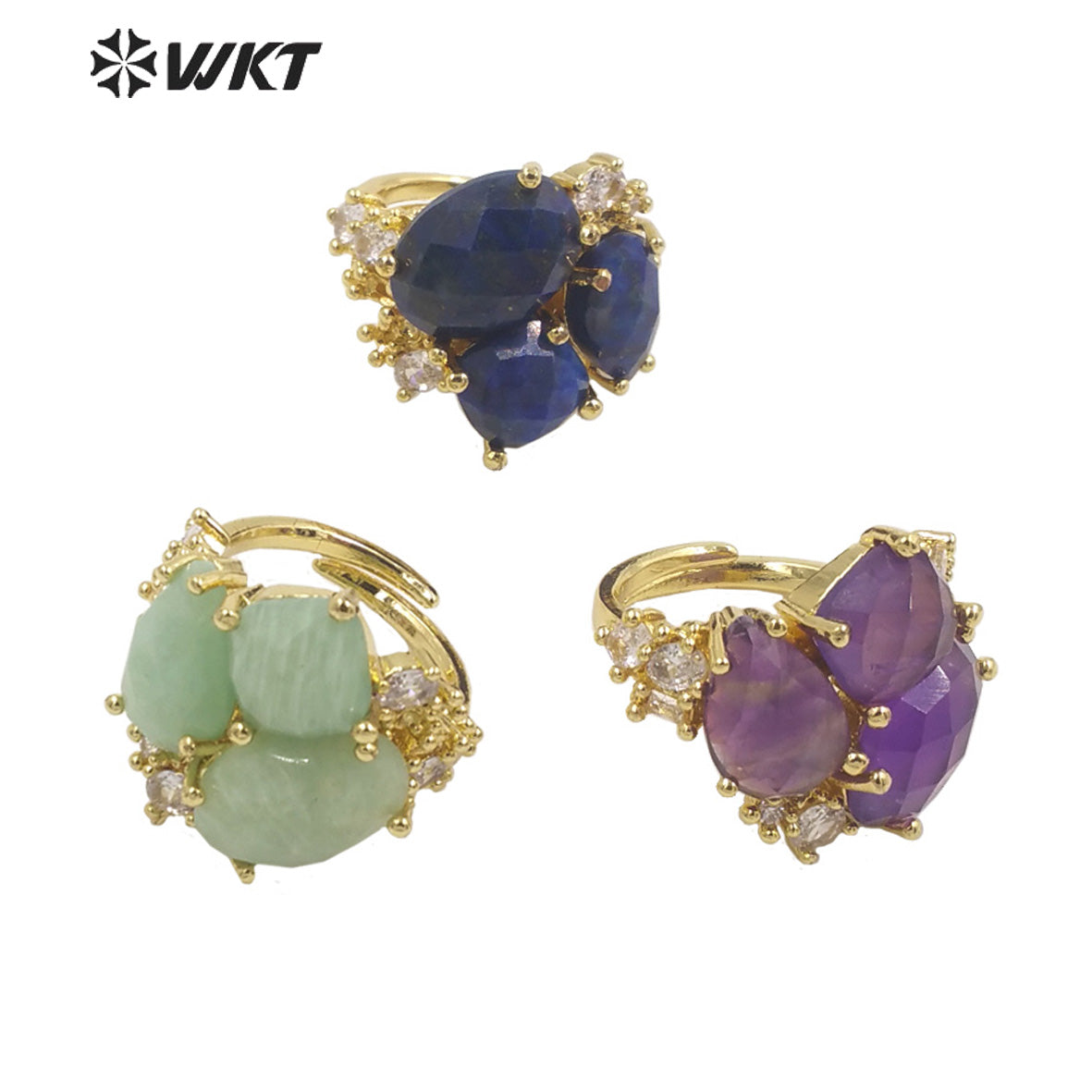 WT-R450 WKT Newest Natural Precious Triple Stone Geometric Shape Women Ring Ins Hot Gold Plated Lapis Jewelry Ring