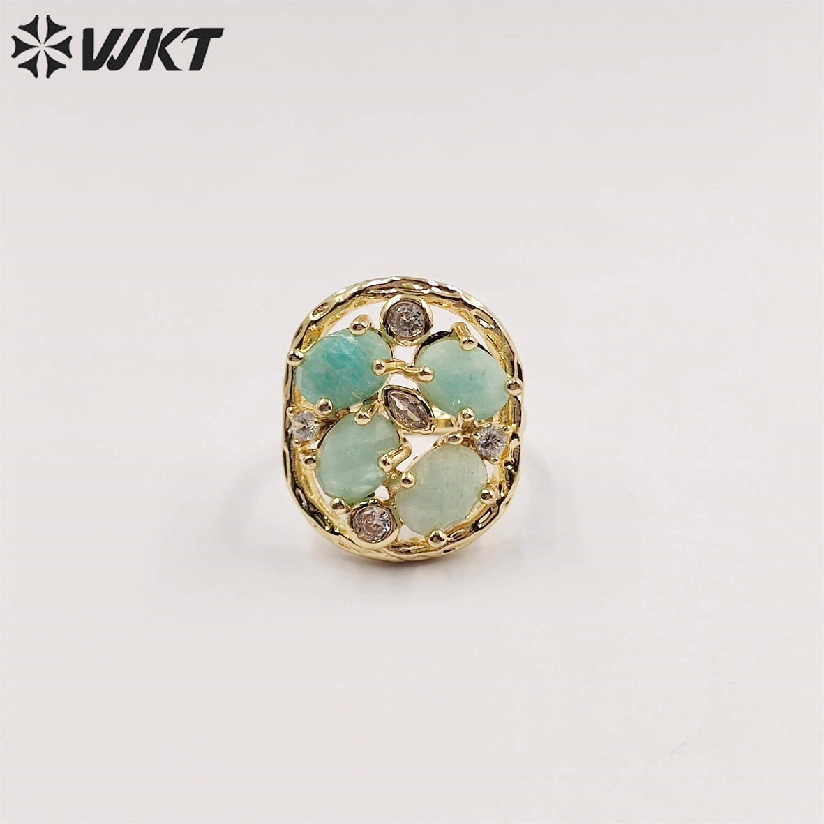 WT-R466 WKT Amazing Gorgeous Natural Stone Ring Micropaved Zircon Setting Precious Gemstone Women Ring