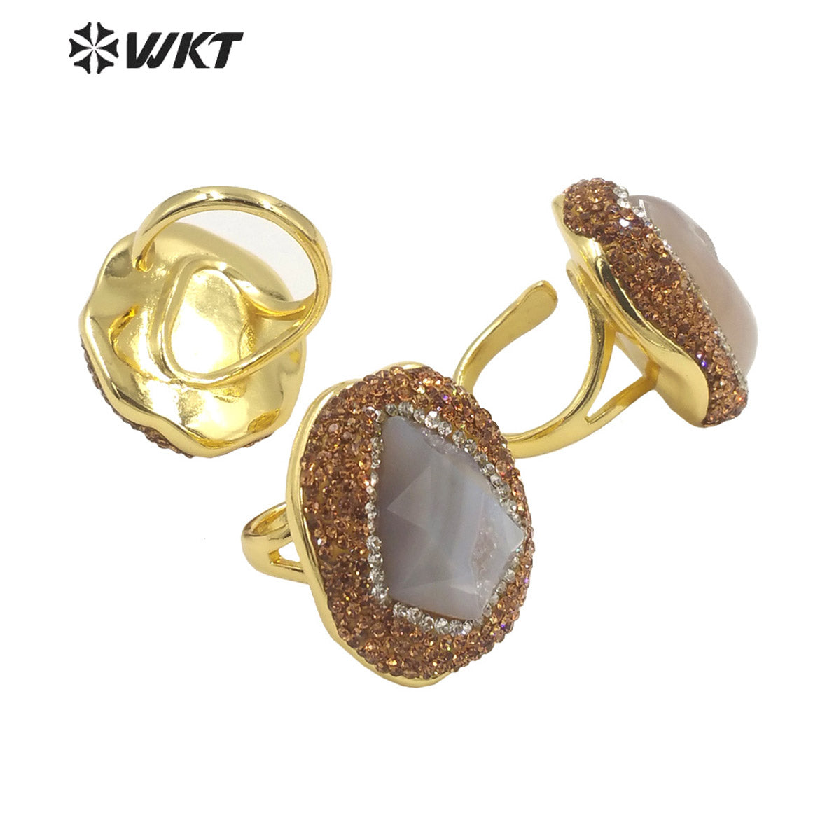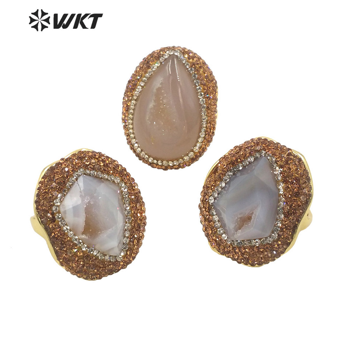 WT-R497 New Popular Gorgeous 18K Real Gold Plated Natural Grey Druzy Geode Agate Arrow Shape With Rhinestone Set Jewelry Ring