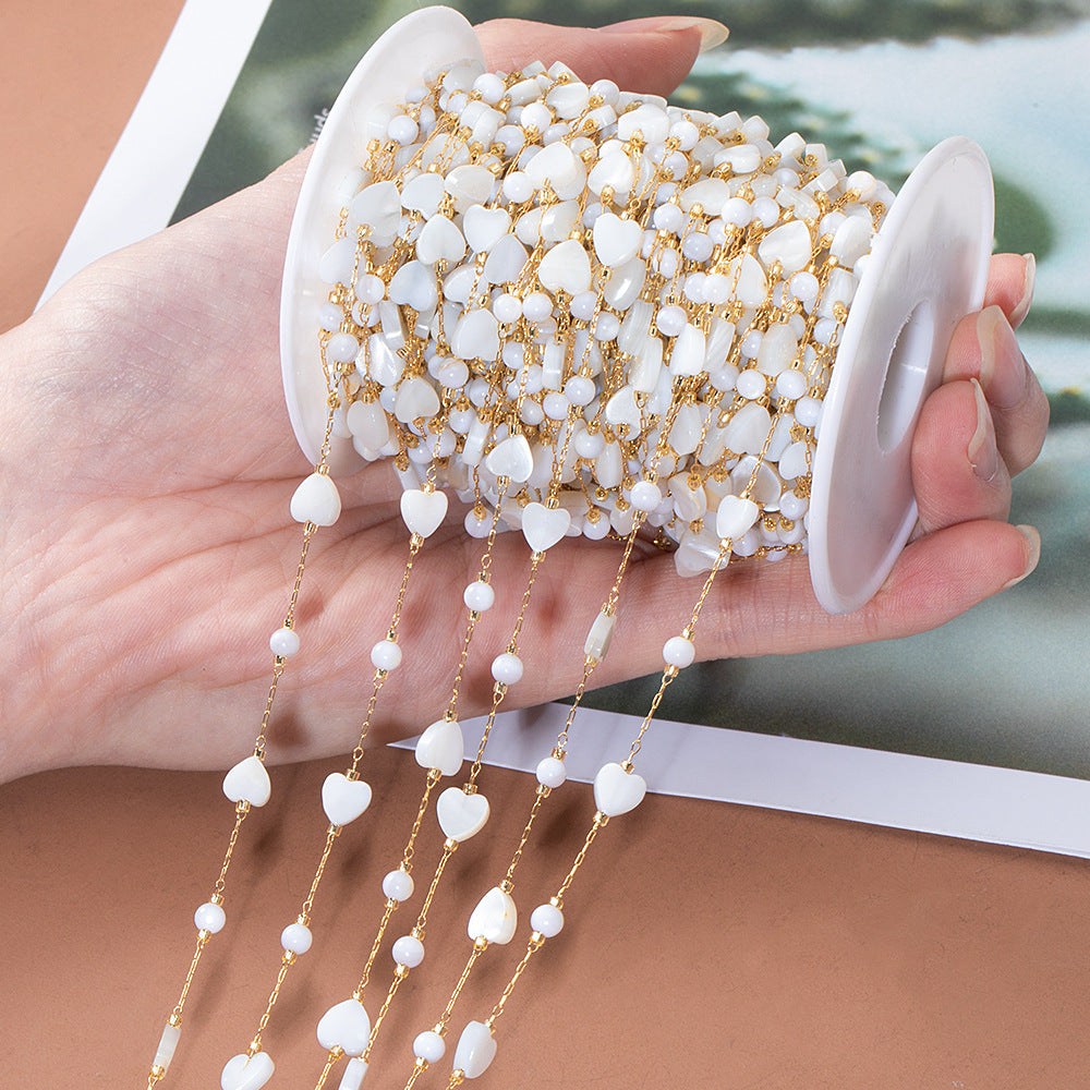 WT-STS021 Good Quality Natural Shell Heart Star Round Shape Stainless Steel Jewelry Chain As Handmade Necklace Accessory
